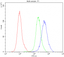 Flow Cytometry: PC-3 cells were blocked with 10% normal goat serum, and then stained with ARG58302 anti-Bcl 2L2 / Bcl W antibody (blue) at 1 µg/10^6 cells for 30 min at 20°C, followed by DyLight®488 labelled secondary antibody. Isotype control antibody (green) was rabbit IgG (1 µg/10^6 cells) used under the same conditions. Unlabelled sample (red) was also used as a control.