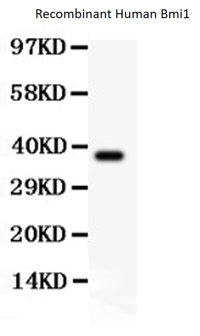 Western blot: 0.5 ng of Recombinant Human Bmi1 protein stained with ARG58309 anti-Bmi 1 antibody at 0.5 µg/ml dilution.
