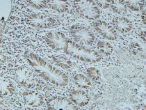 Immunohistochemistry: Paraffin-embedded Human colon tissue stained with ARG66659 anti-CDC25B antibody at 1:400 dilution, overnight at 4°C. Antigen Retrieval: High-pressure and temperature EDTA buffer (pH 8.0).