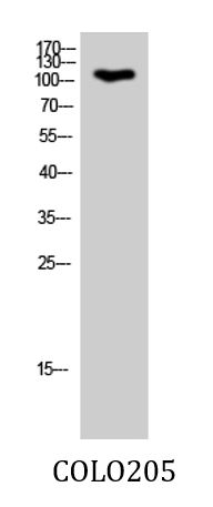 Western blot: COLO205 cell lysate stained with ARG66667 anti-Eg 5 phospho (Thr926) antibody at 1:2000 dilution.