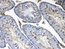 Immunohistochemistry: Paraffin-embedded Mouse testis tissue. Antigen Retrieval: Heat mediated was performed in Citrate buffer (pH 6.0, epitope retrieval solution) for 20 min. The tissue section was blocked with 10% goat serum. The tissue section was then stained with ARG59438 anti-FMN1 antibody at 1 µg/ml, overnight at 4°C.