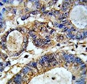 Immunohistochemistry: Formalin-fixed and paraffin-embedded Human colon carcinoma stained with ARG59639 anti-GUSB / beta glucuronidase antibody.