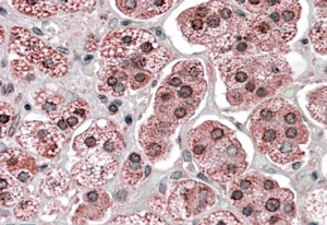Immunohistochemistry: paraffin embedded Human Adrenal Gland. (Steamed antigen retrieval with citrate buffer pH 6) stained with ARG64586 anti-KPNA6 antibody at 3.8 µg/ml dilution followed by AP-staining.