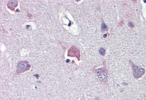 Immunohistochemistry: Paraffin-embedded Human brain (cortex) tissue stained with ARG40193 anti-LDOC1 antibody at 5 µg/ml dilution.