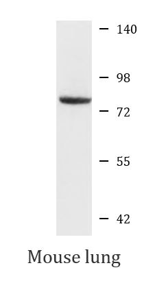 Western blot: 25 µg of Mouse lung lysate stained with ARG40530 anti-NPHP1 / Nephrocystin 1 antibody at 1:1000 dilution.