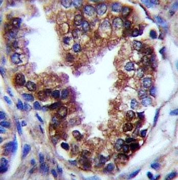 Immunohistochemistry: Formalin-fixed and paraffin-embedded Human prostate carcinoma tissue stained with ARG41218 anti-RAB3D antibody.