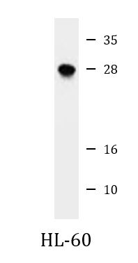 Western blot: 35 ug of HL-60 cell lysate stained with ARG41218 anti-RAB3D antibody.