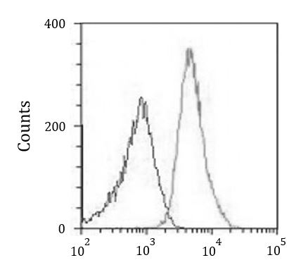 Flow Cytometry: U-2OS cells were fixed with 2% paraformaldehyde (10 min) and then permeabilized with 90% methanol for 10 min. Cells were then incubated in 2% BSA to block non-specific protein-protein interactions followed by ARG59737 anti-RPL14 antibody (right histogram) at 1:25 dilution for 60 min at 37°C, followed by DyLight®488 labelled secondary antibody. Isotype control antibody (left histogram) was rabbit IgG (1 µg/10^6 cells) used under the same conditions. Acquisition of > 10000 events was performed.
