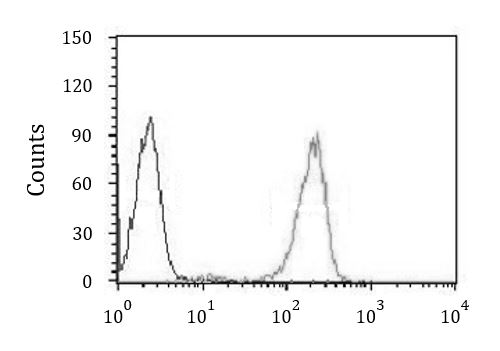 Flow Cytometry: HL-60 cells stained with ARG40138 anti-SNRPD1 / Sm D1 antibody (right histogram) or without primary antibody as control (left histogram), followed by incubation with FITC labelled secondary antibody.