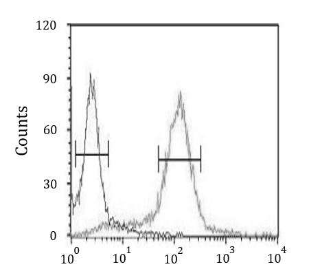 Flow Cytometry: HeLa cells stained with ARG59264 anti-STIP1 antibody (right histogram) or without primary antibody as control (left histogram), followed by incubation with FITC labelled secondary antibody.